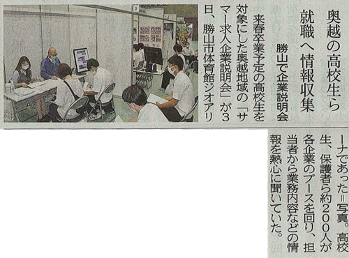 7月3日、勝山市体育館にて2022年卒業予定の高校生を対象にした企業説明会に参加しました